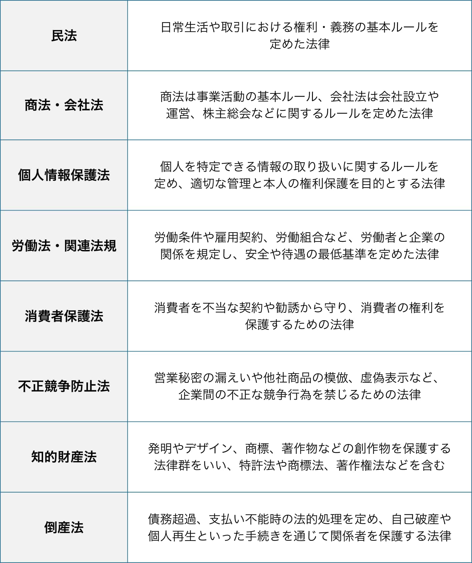 たとえば、自社で新サービスを始めたり業務委託契約を締結したりする場合、どの法律が関係するかを事前に確認しておかなければなりません。