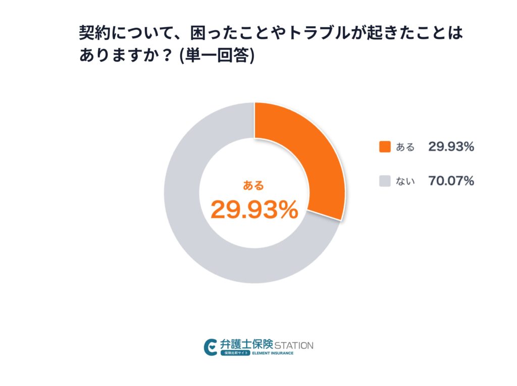 自分名義で契約した新成人を対象に「契約について、困ったことやトラブルが起きたことはありますか?」という質問に対し、約3割が「ある」と回答しました。